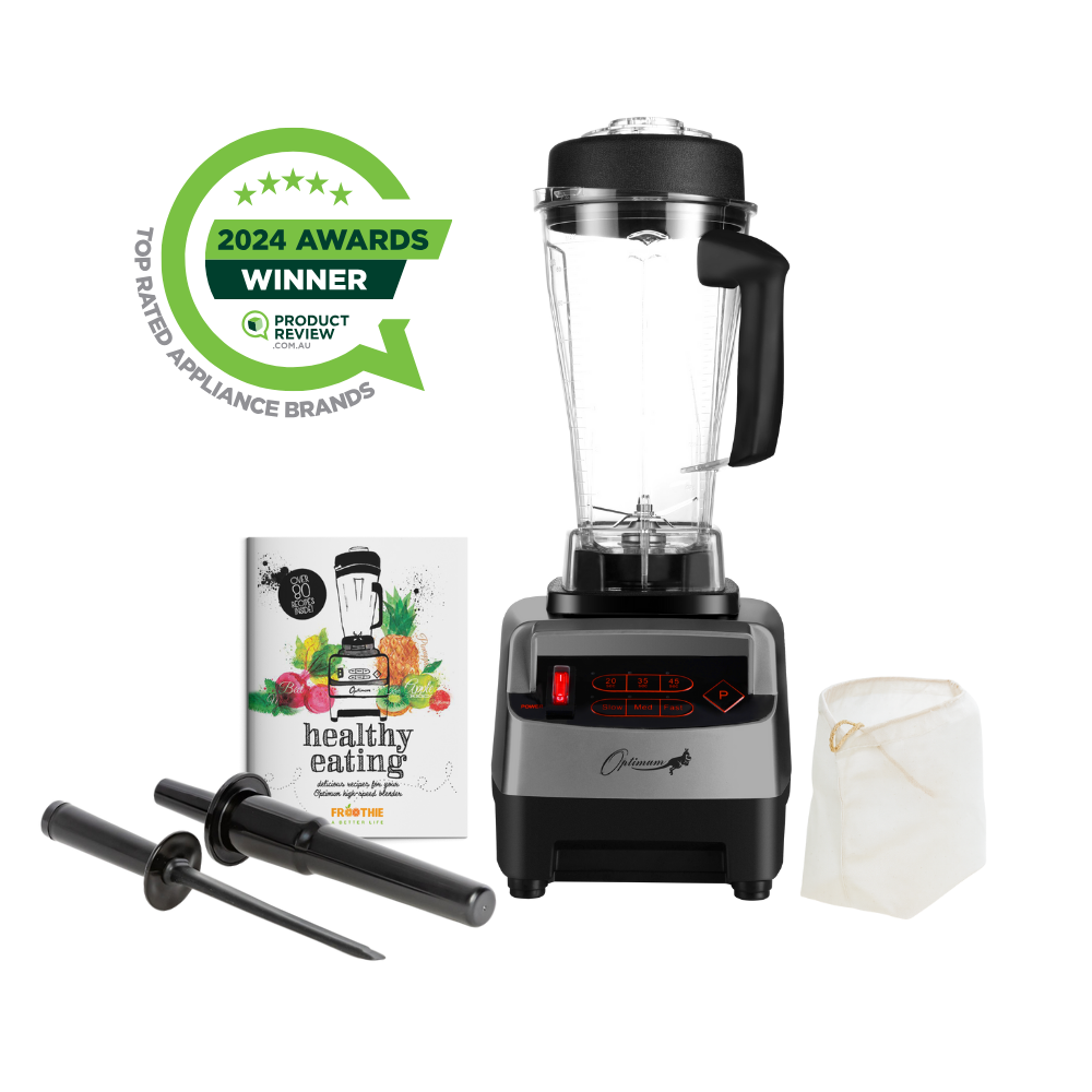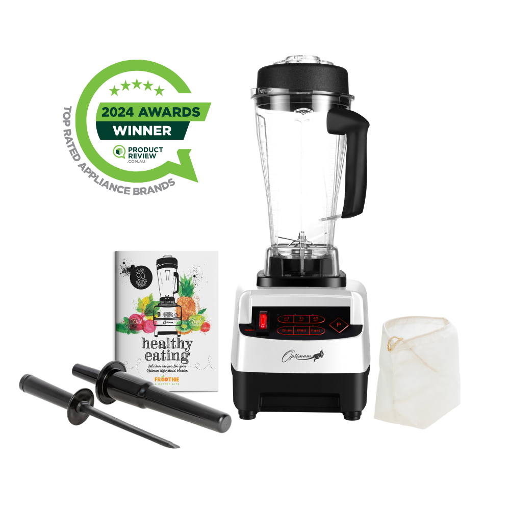 Wie Sie anhand der Spezifikationen oben sowie an der Qualität der Teile erkennen können,, ist der Optimum wirklich ein einzigartiger Gerät und Froothie ist stolz darauf, alleiniger Händler des Produkts in Australien, Neuseeland, Europa und Singapur zu sein. Optimum wächst als global anerkannte Marke und das Konkurrieren mit Größen wie Vitamix und Blendtex war erstaunlich. Wir haben uns mit den besten Herstellern der Industrie zusammengetan, um eine preiswerte Qualitätsmaschine zu entwickeln, die den Raffinessen der Küche und dem Takt in einer Saftbar standhält. Wir bieten Kunden eine lebenslang haltende und eine für Saftbars verlässliche Maschine für das Herstellen von Smoothie Getränken.